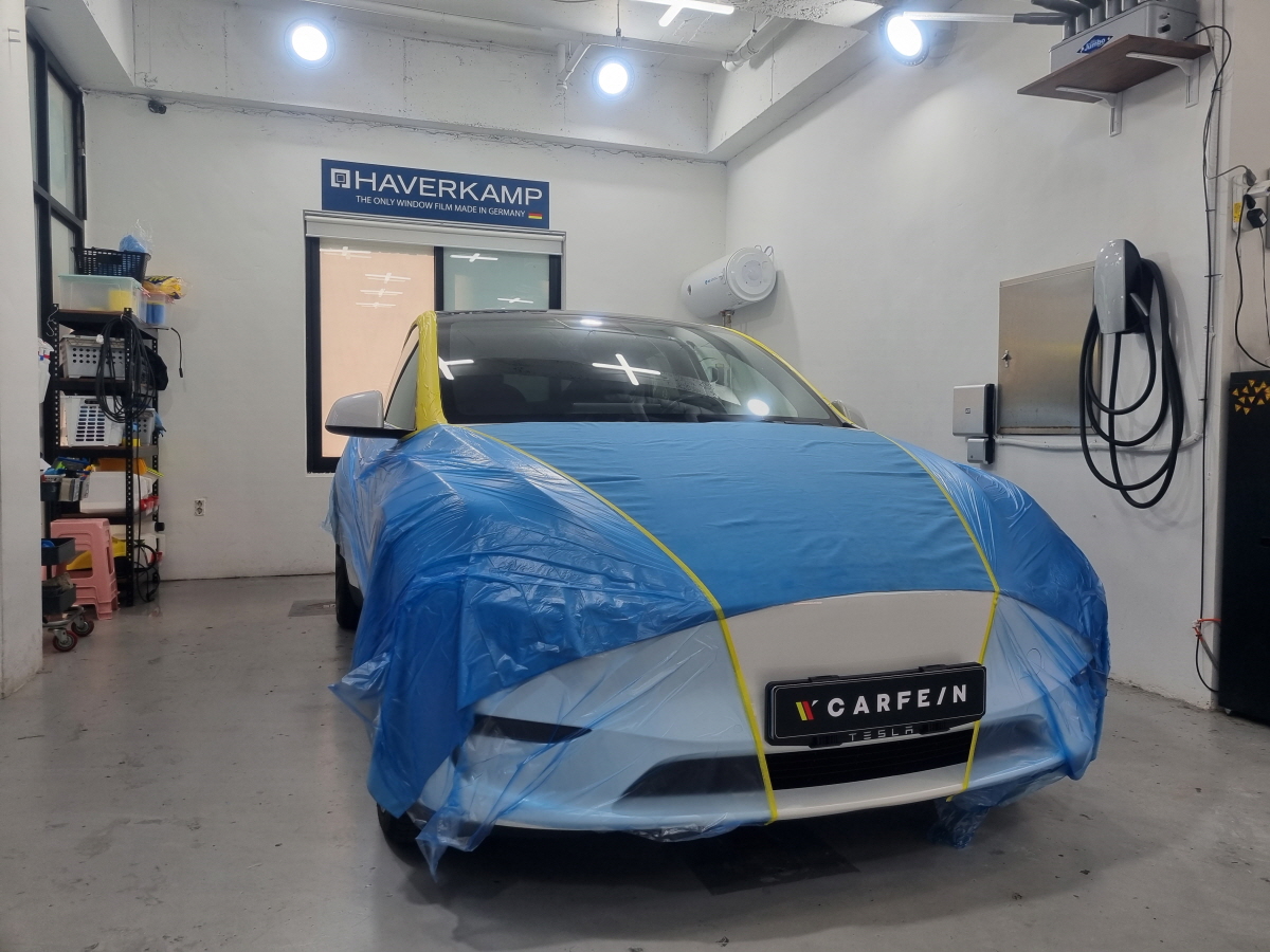 차량이 먼저 입고가 되면, 신차패키지 중 테슬라의 단차를 확인합니다.