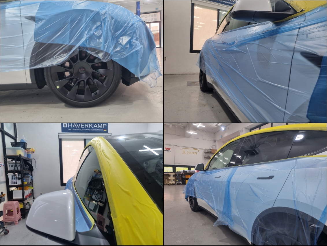 마스킹테이프를 통해 차량을 보호해줍니다.