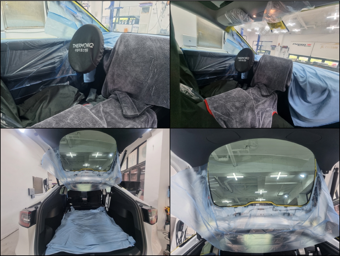 틴팅 작업 준비전 연무기를 통해 습도를 올려줘서