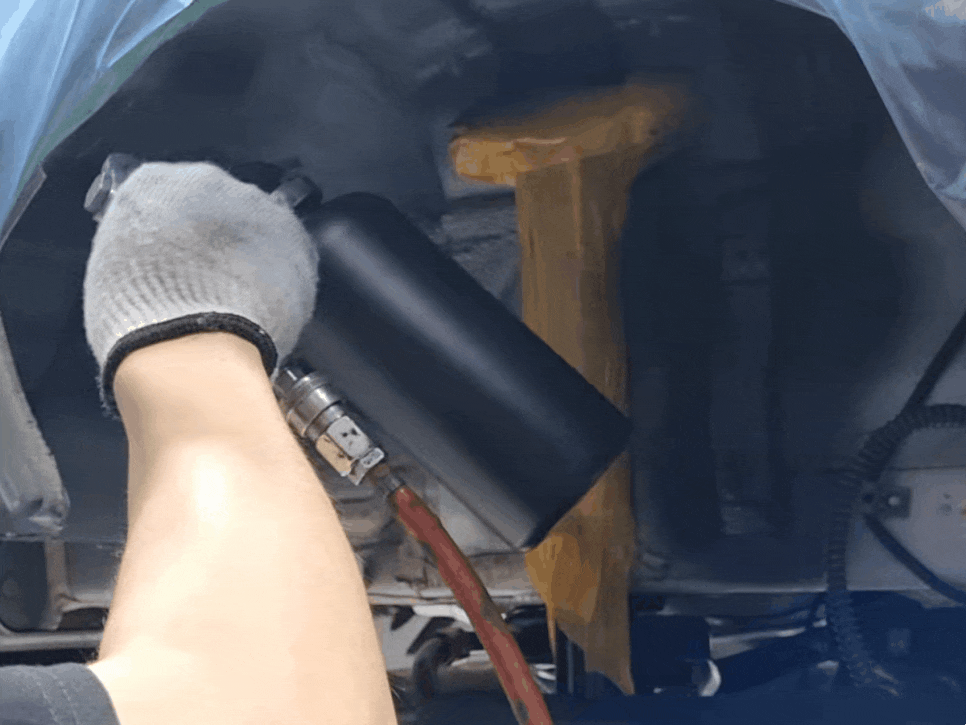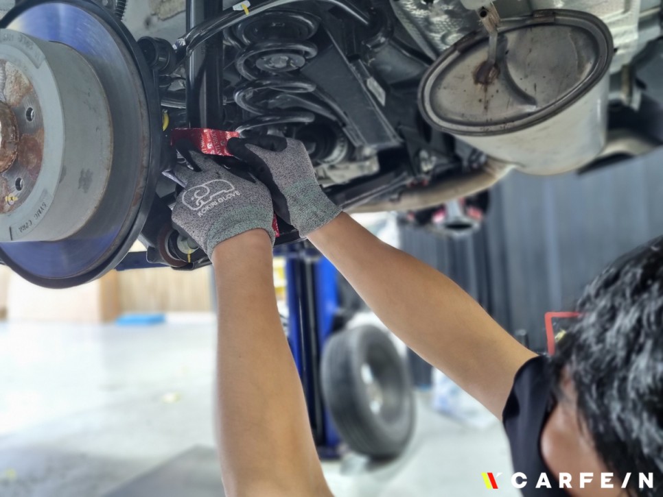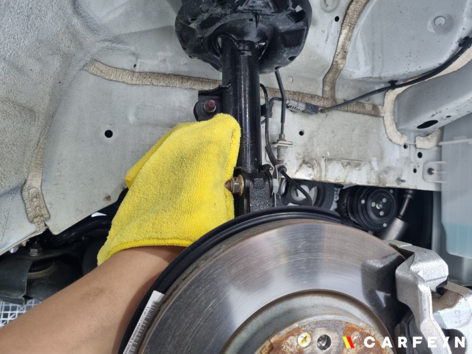 휠을 탈거한 뒤 시공될 부위를 탈지 작업을 거쳐