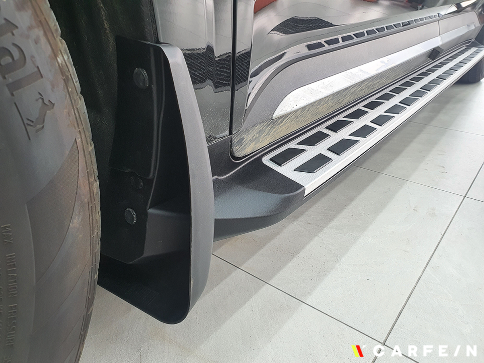 사이드스텝+대형 머드가드 동시장착이 가능하며