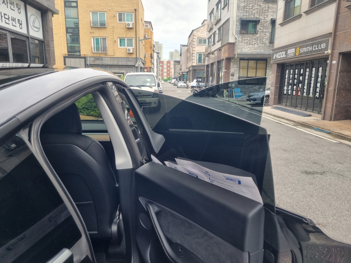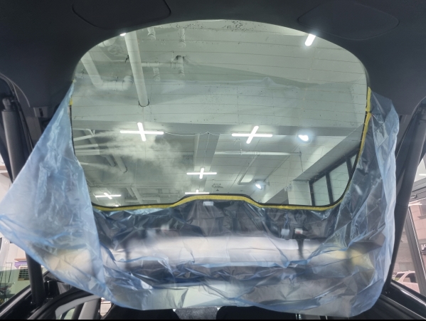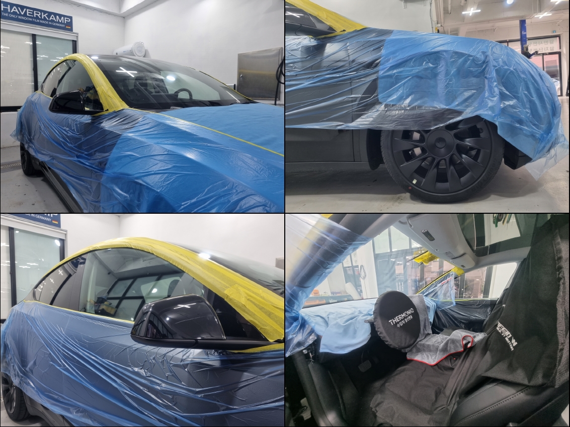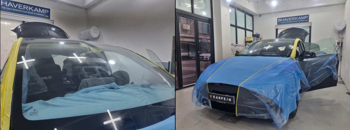 신차검수 후 차량에 틴팅준비를 해줍니다.