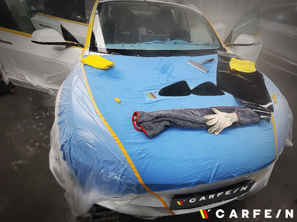 썬팅 작업 중 혹시 모르는 먼지까지 차단해버리기 위해