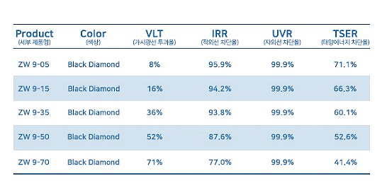 적외선 차단율 최대 95.9%