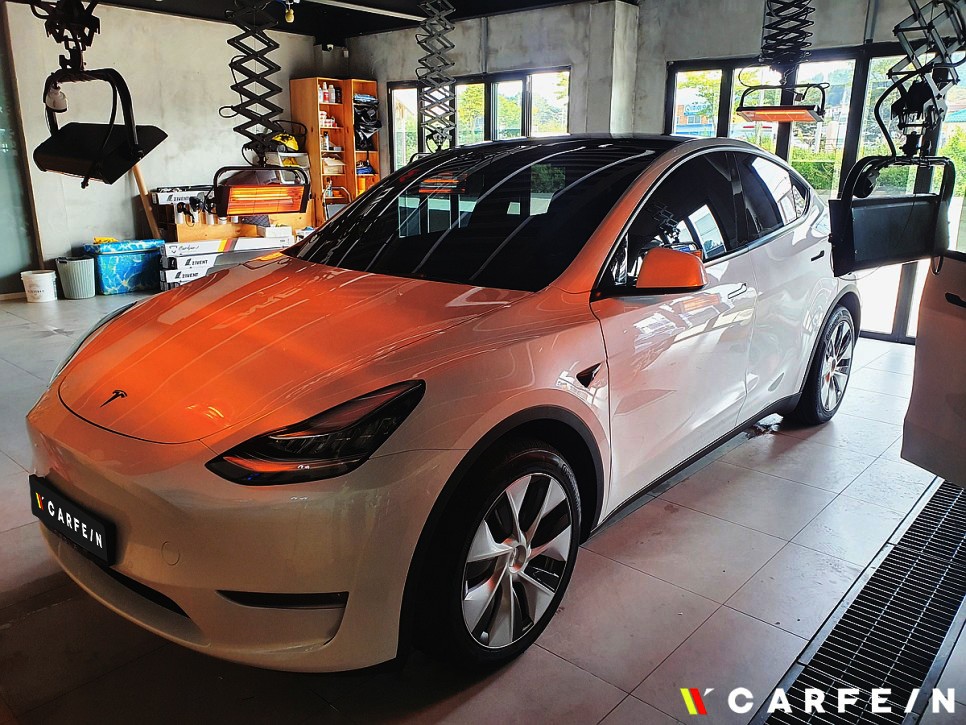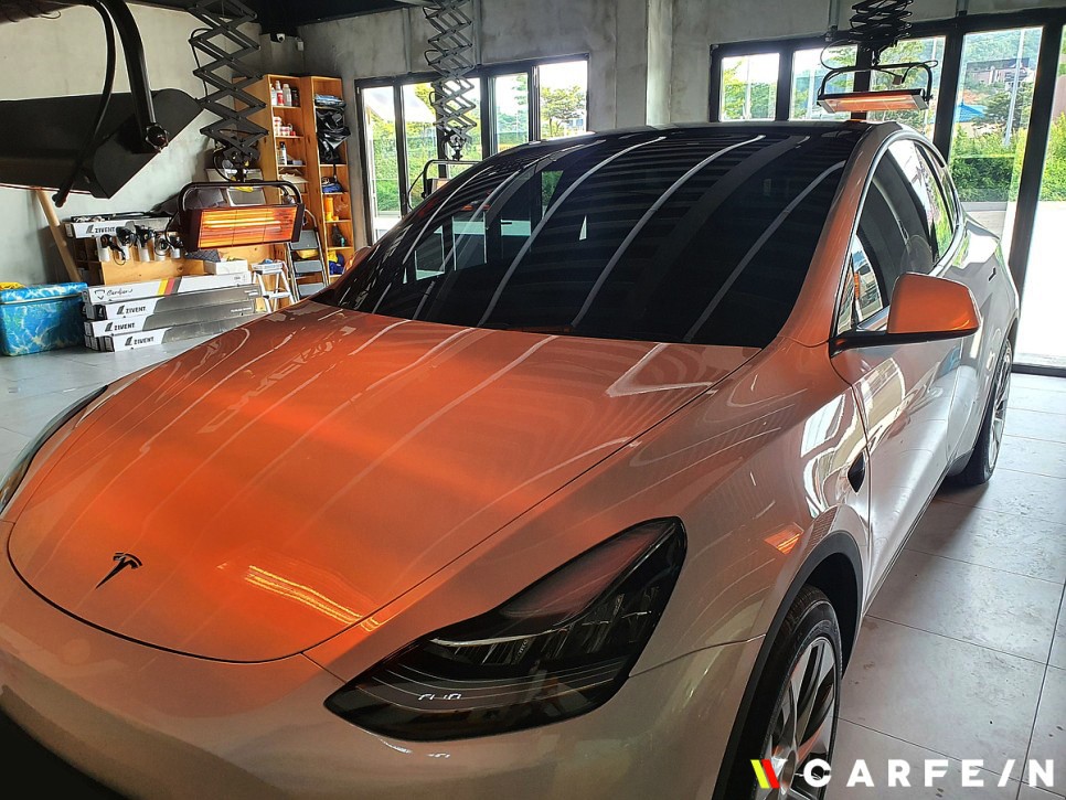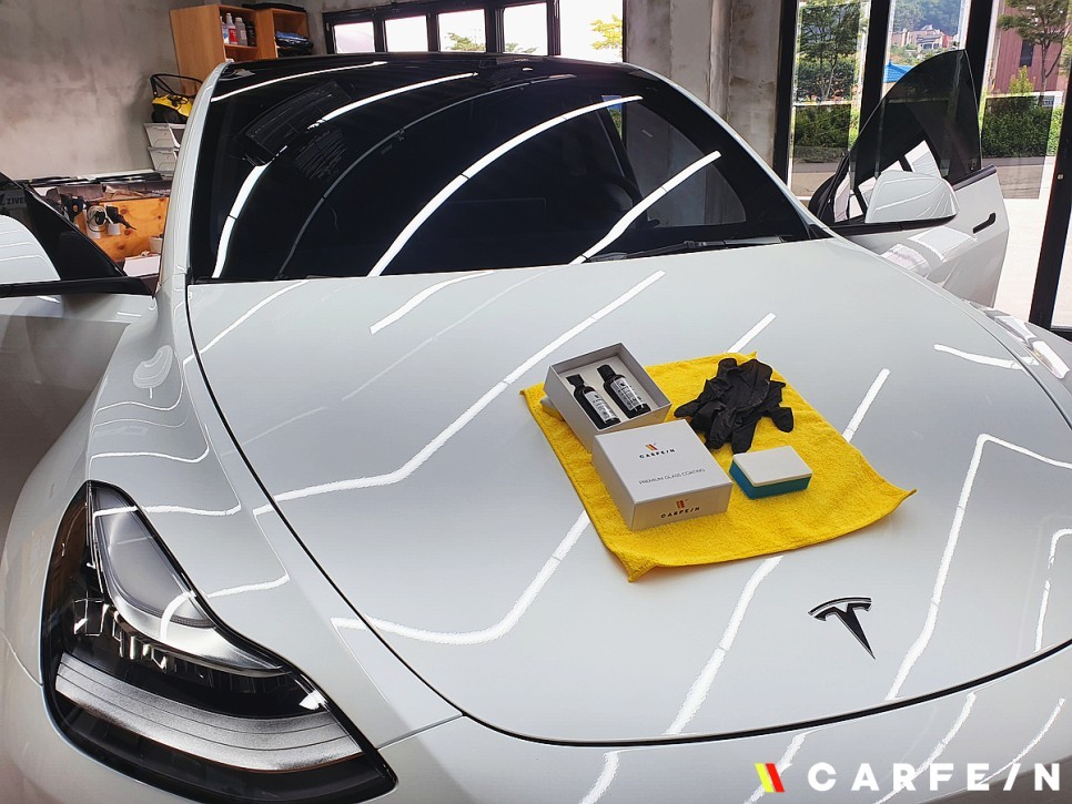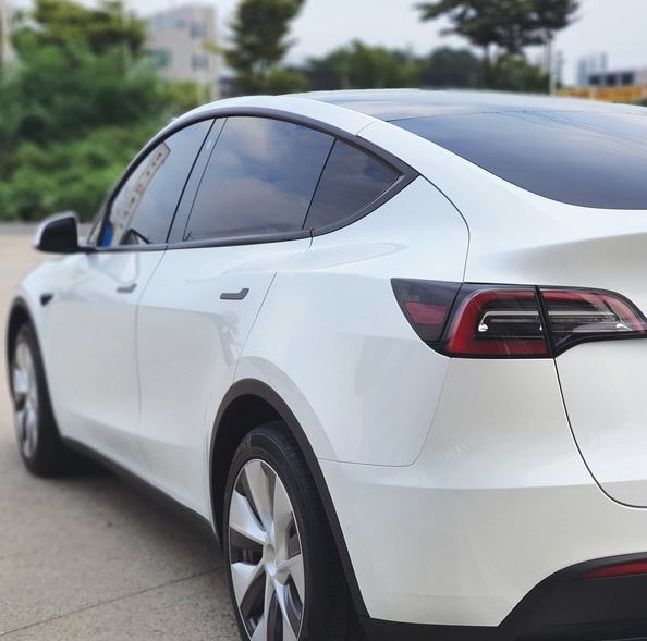 유리막 코팅 작업을 통해 테슬라 모델Y