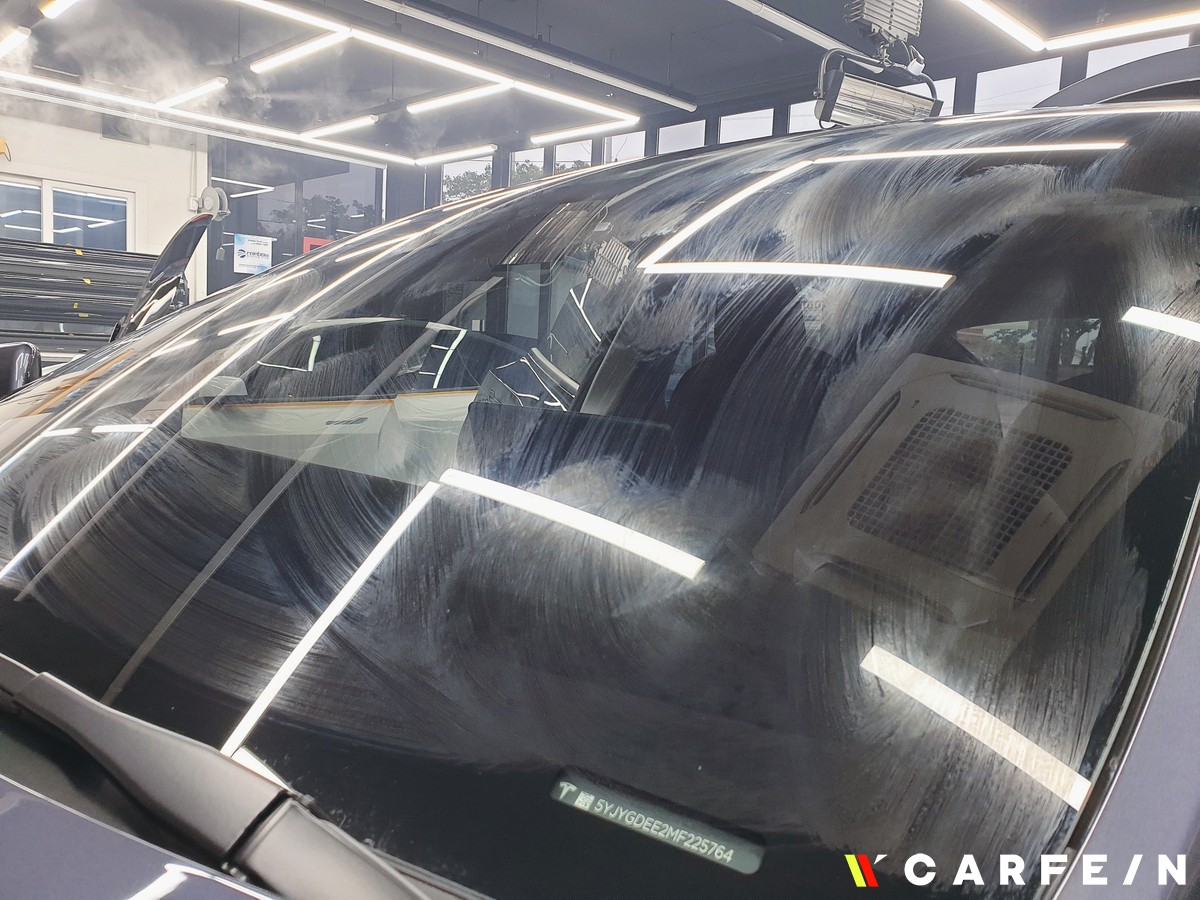 수작업을 통해 유리막 코팅제를 도포와