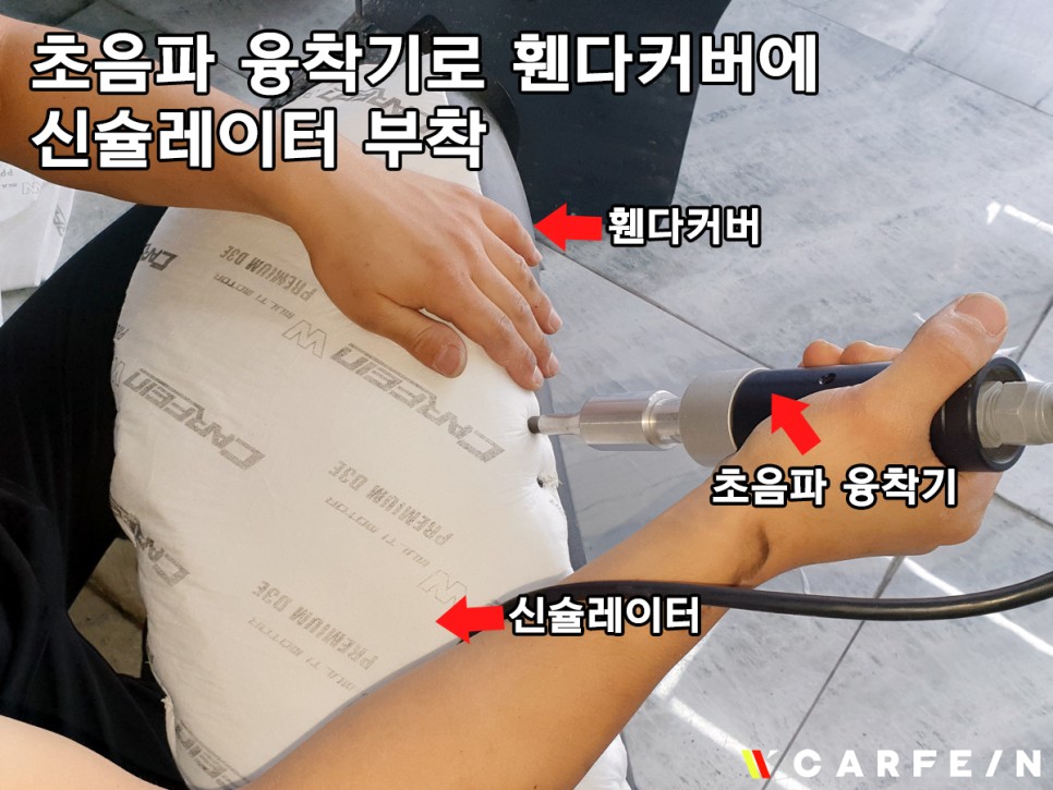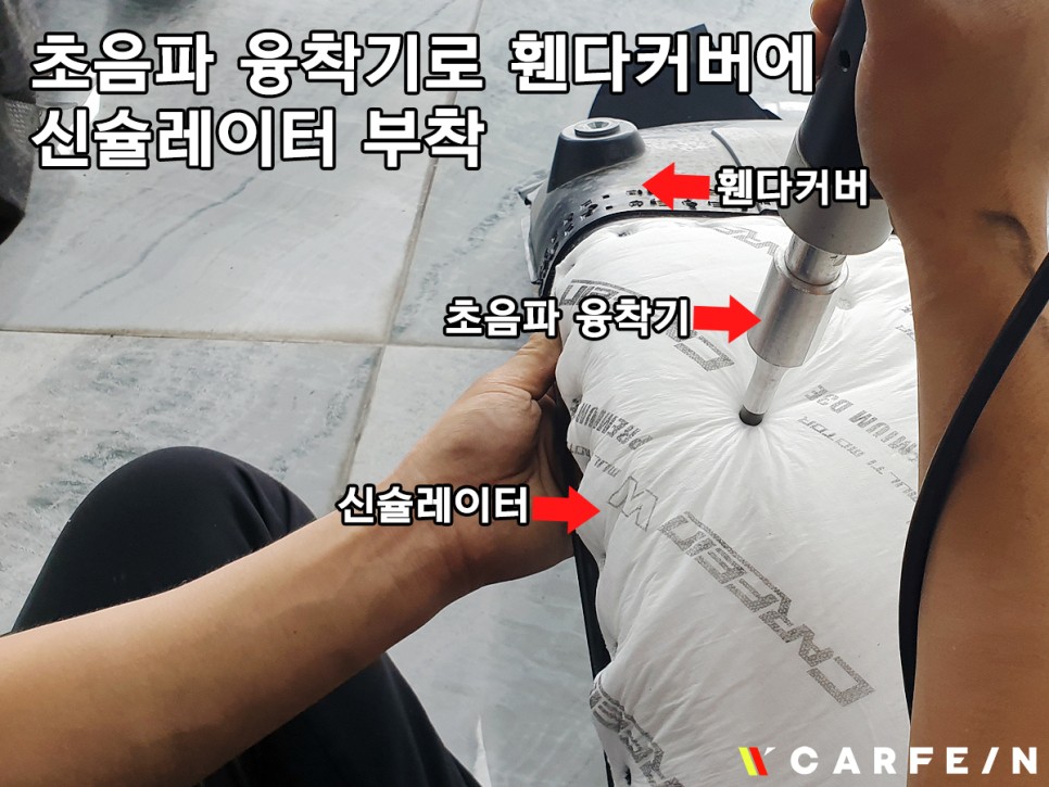 다음으로 휀다 커버에 신슐레이터를 부착합니다.