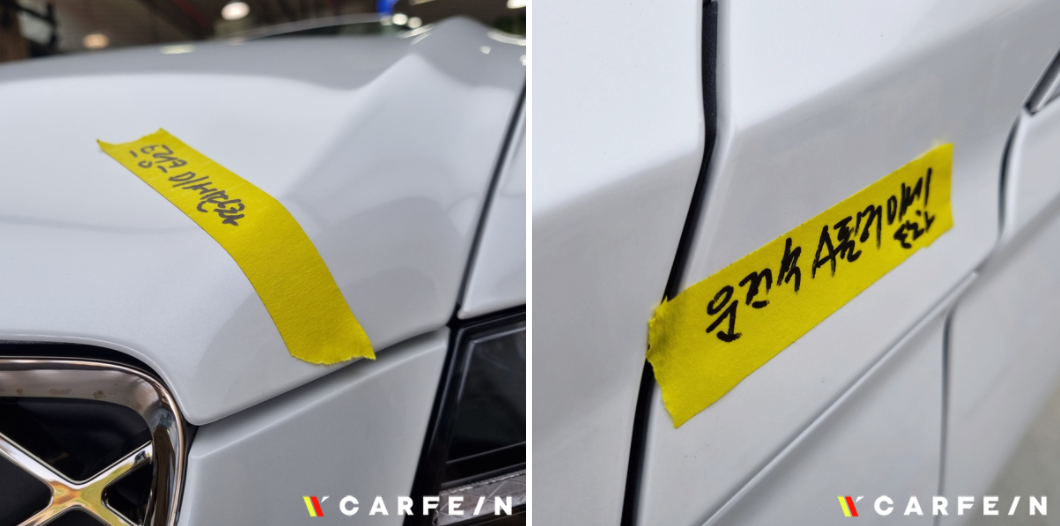 도어, 트롱크, 유리, 이음색 부분에 집중적으로 뿌려