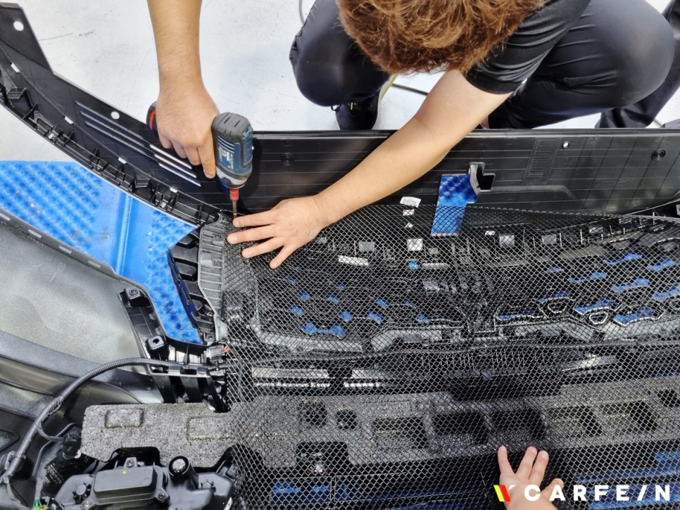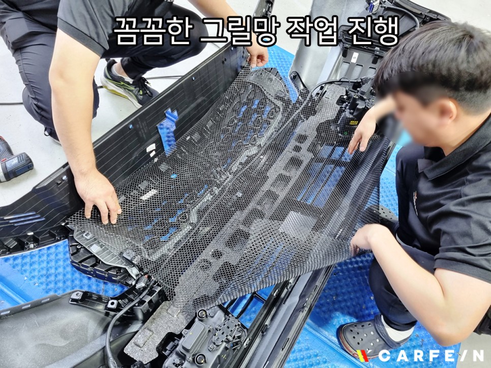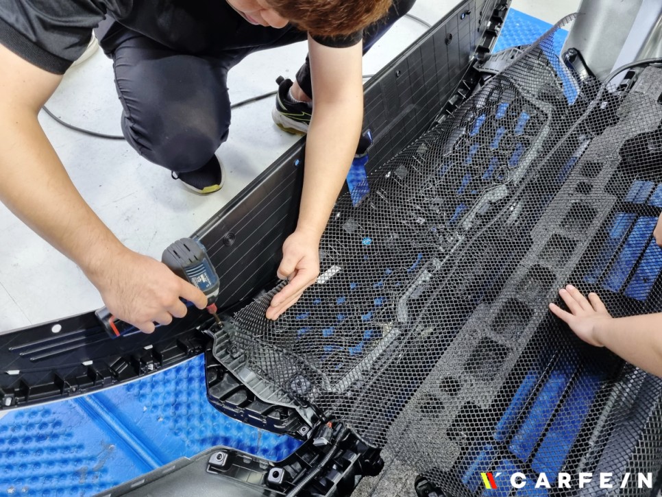 차량의 그릴 간격이 넓어 그릴망 작업을