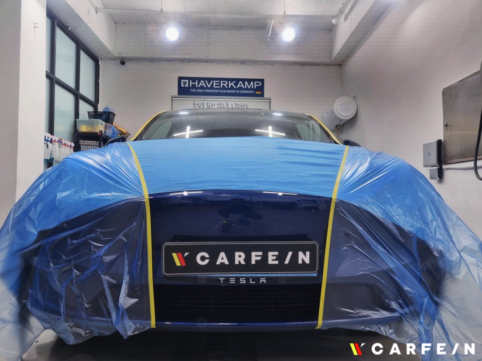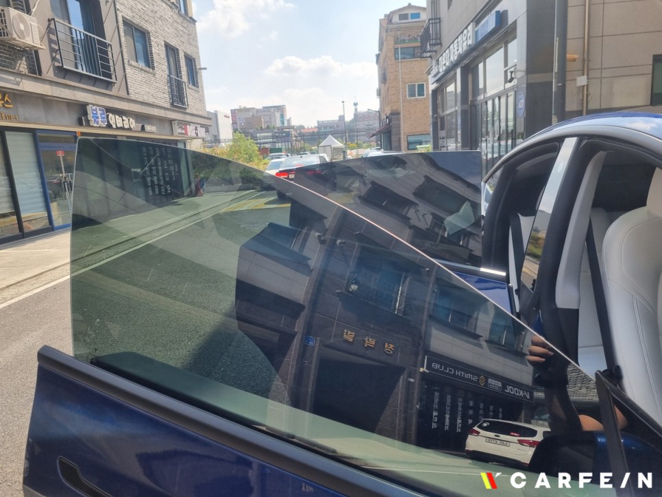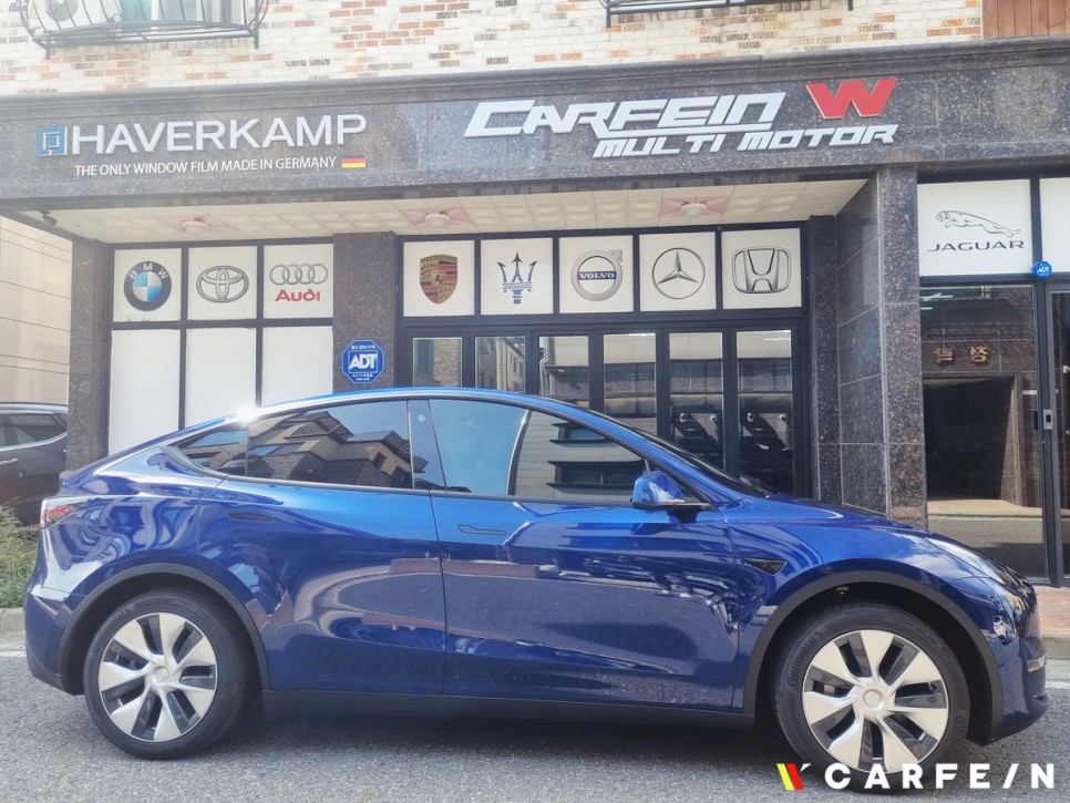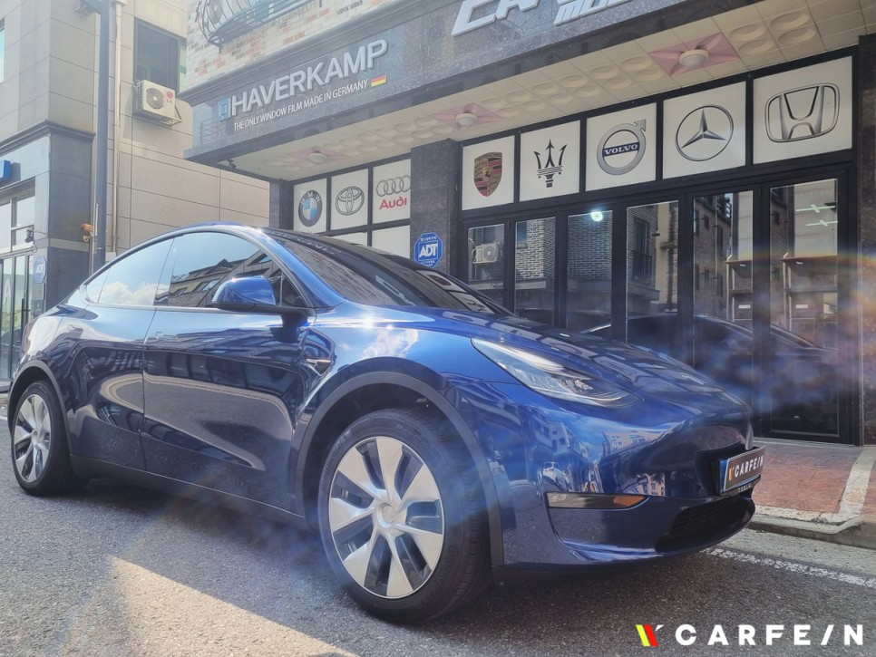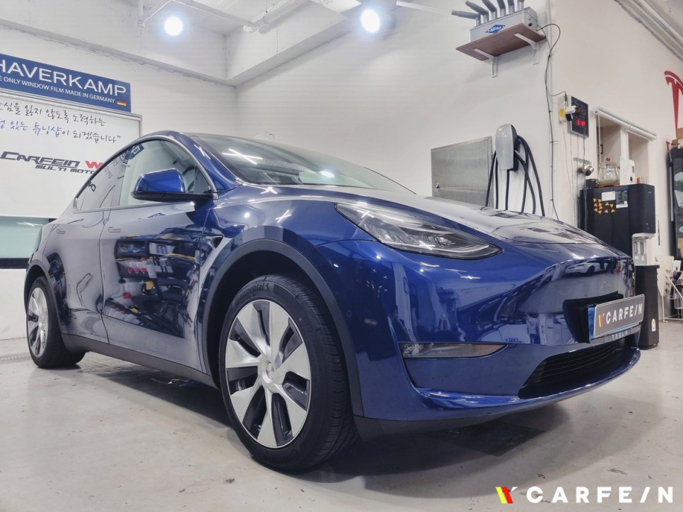 테슬라 모델Y 차량의 썬팅과 PPF 시공을 마치고