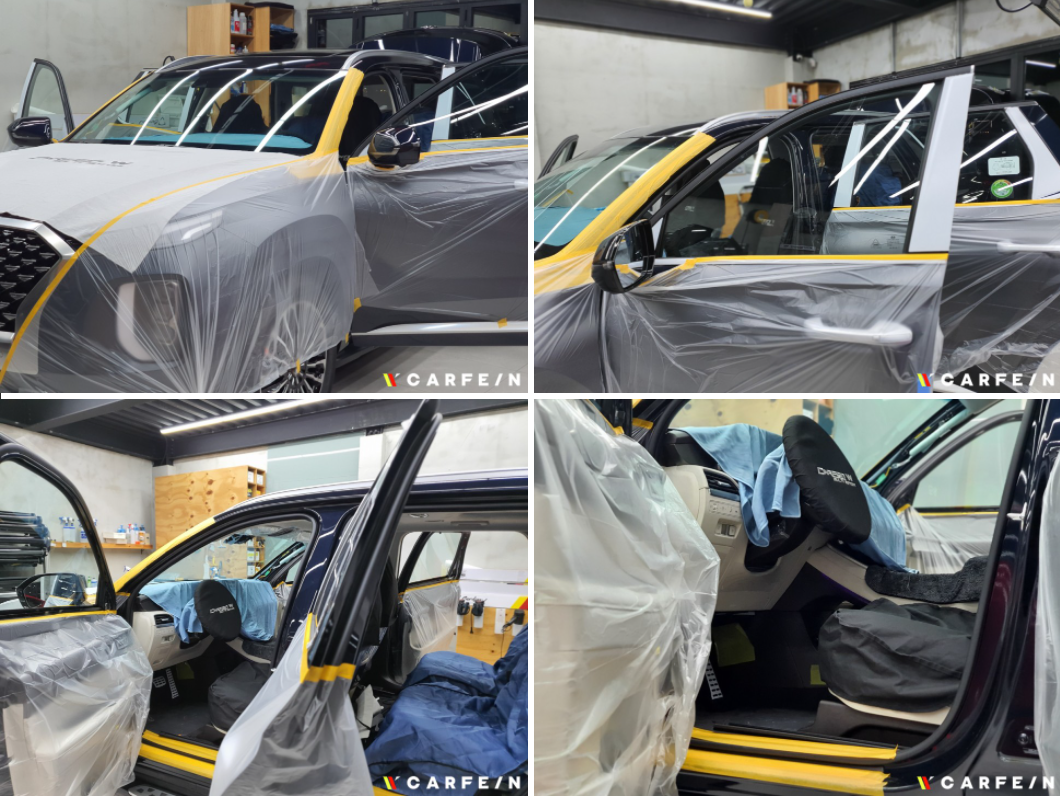 본격적인 신차썬팅 작업 전, 카페인W 만의