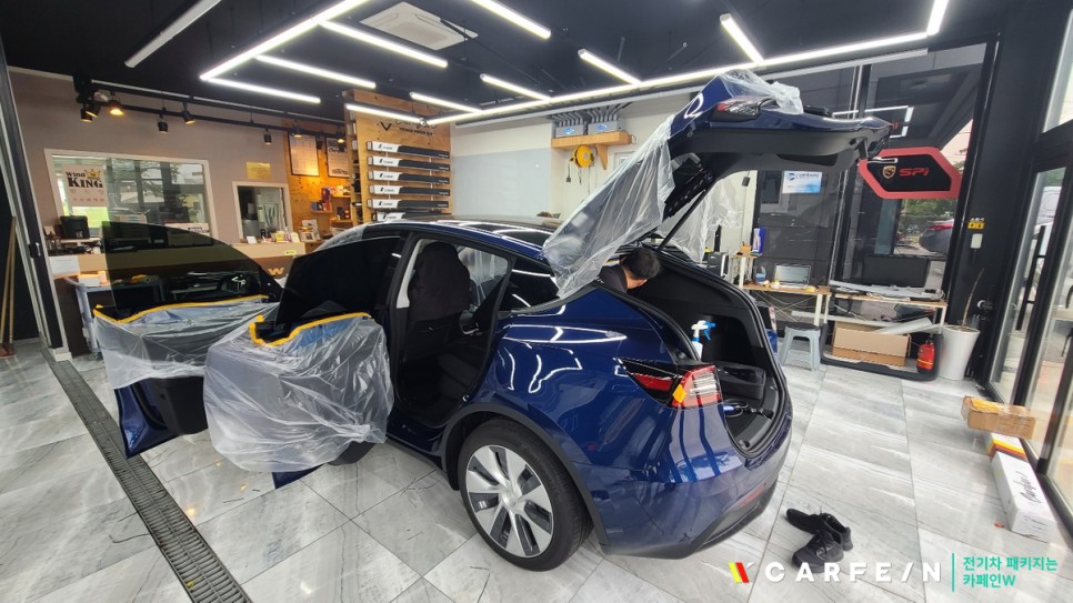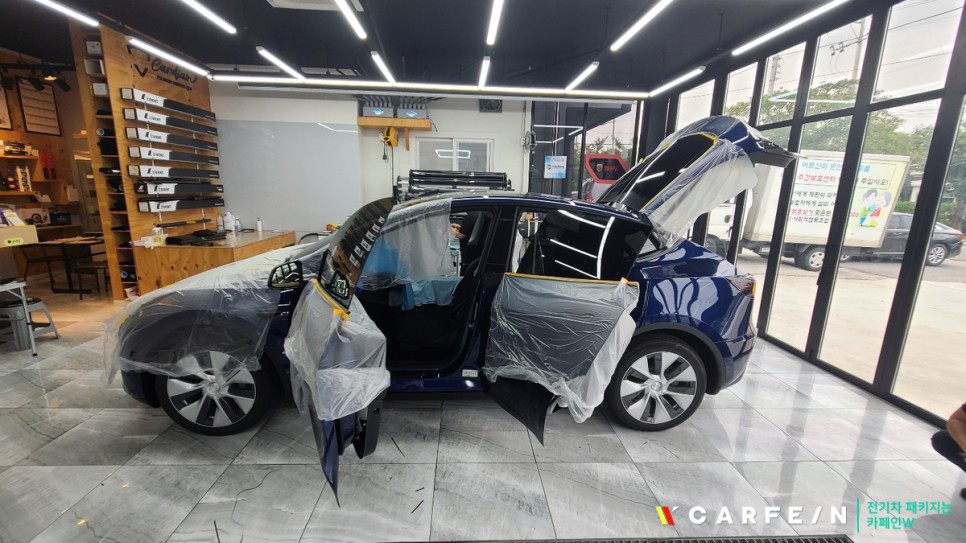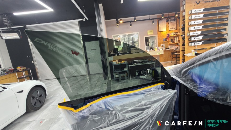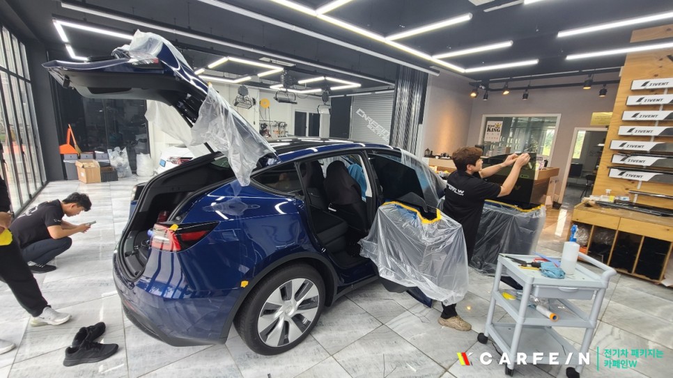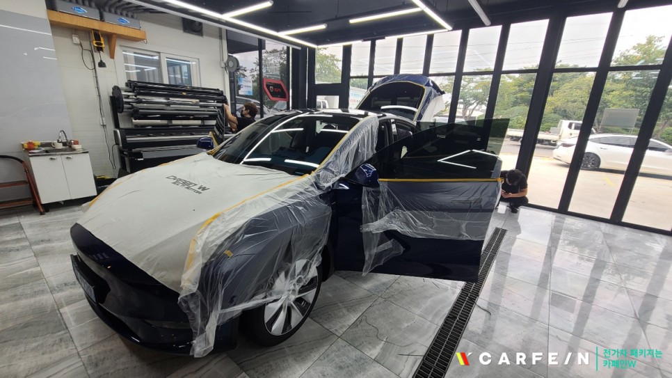 부산테슬라썬팅 내/외부 모두 작업 도중