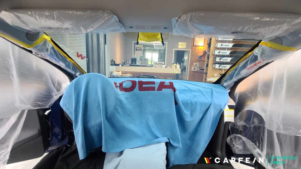 빈틈없이 깔아주어 썬팅 용액이 묻지 않도록