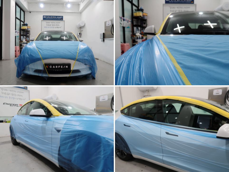 대전전기차 썬팅 작업 전 차량을 안전하게