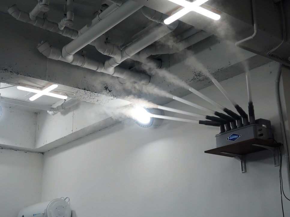 실내 구비되어 있는 연무기를 작동하고 있습니다.