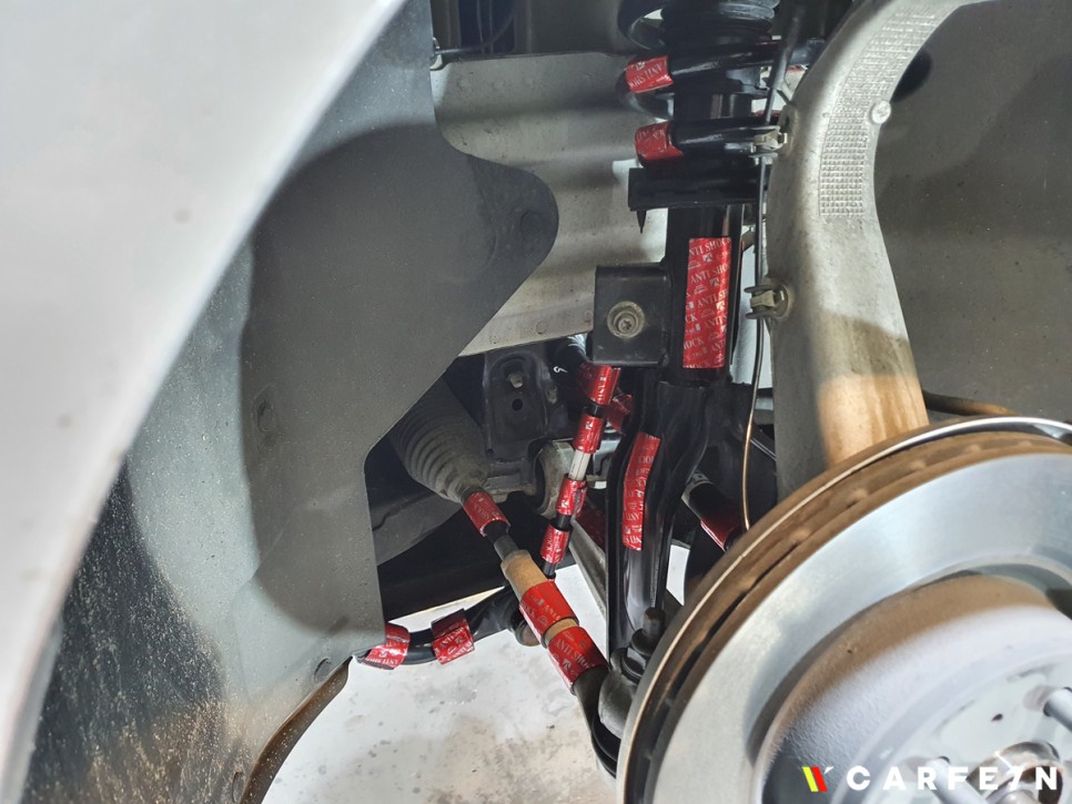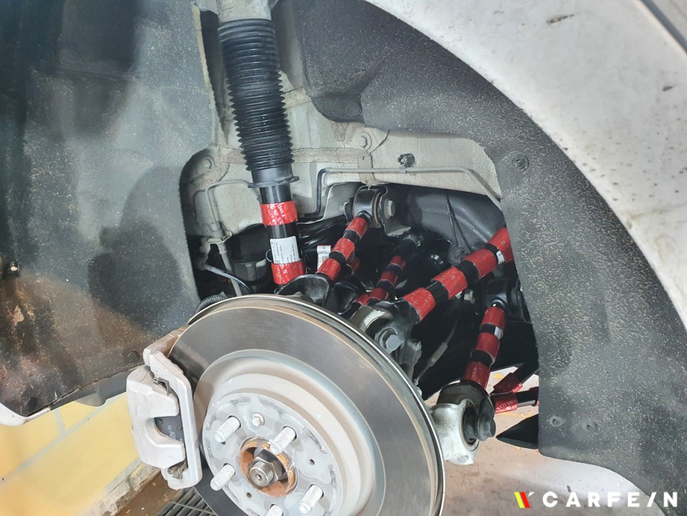 차량의 휠 탈거 후 바로 안티쇼크 패치를