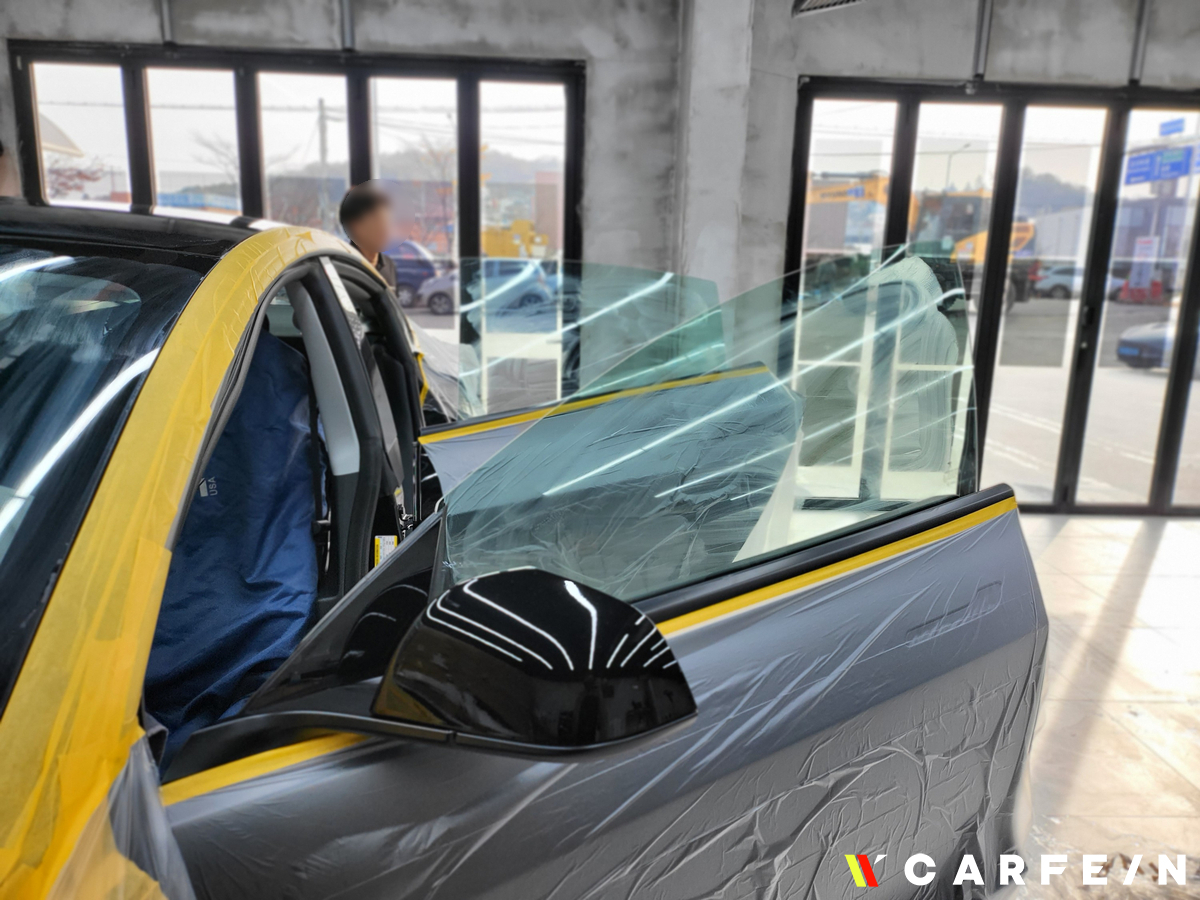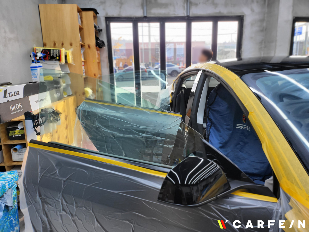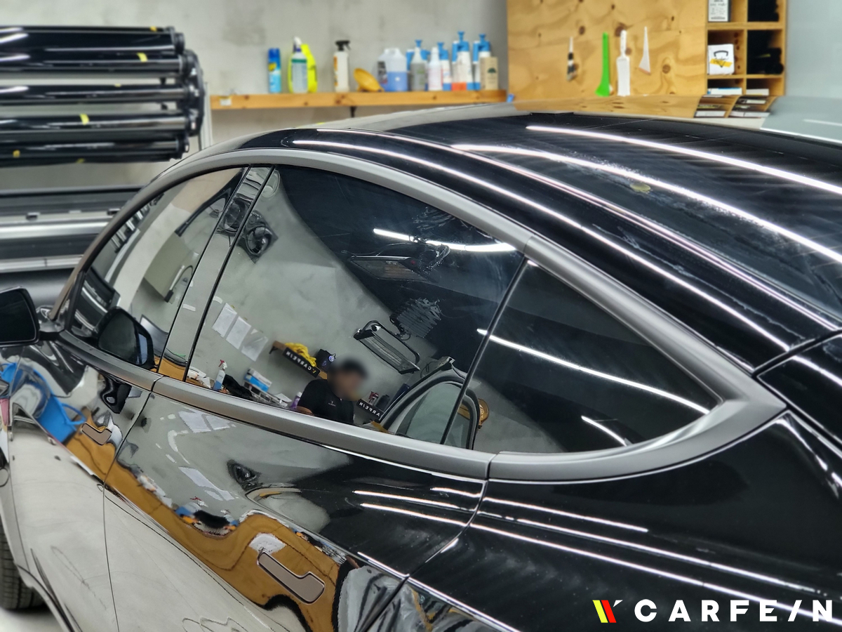 테슬라 썬팅 작업이 진행이 되고 있기 때문에