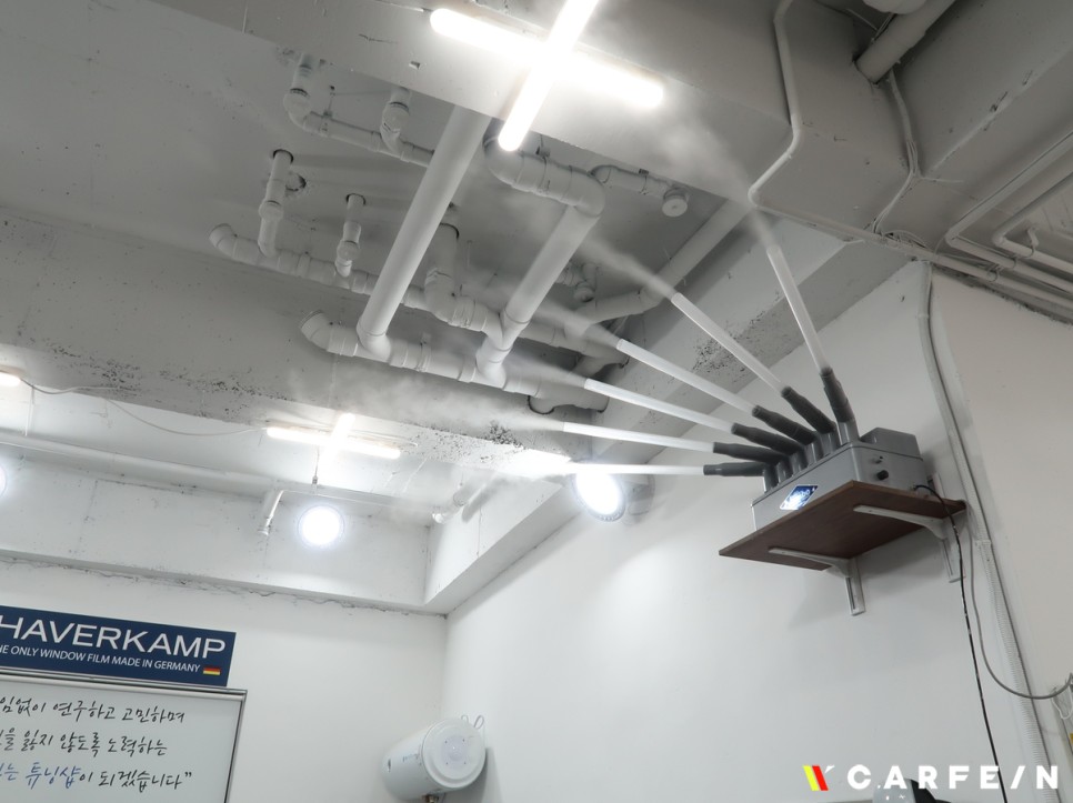 안개 같은 미세한 물입자가 천장에서 쉼 없이 나와