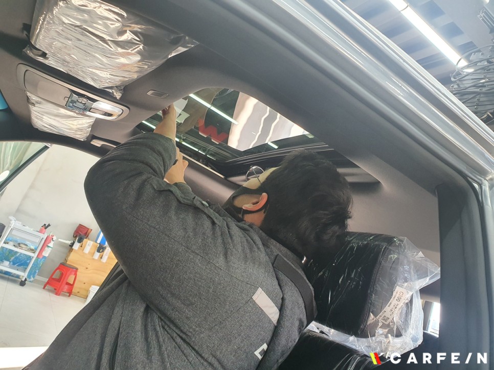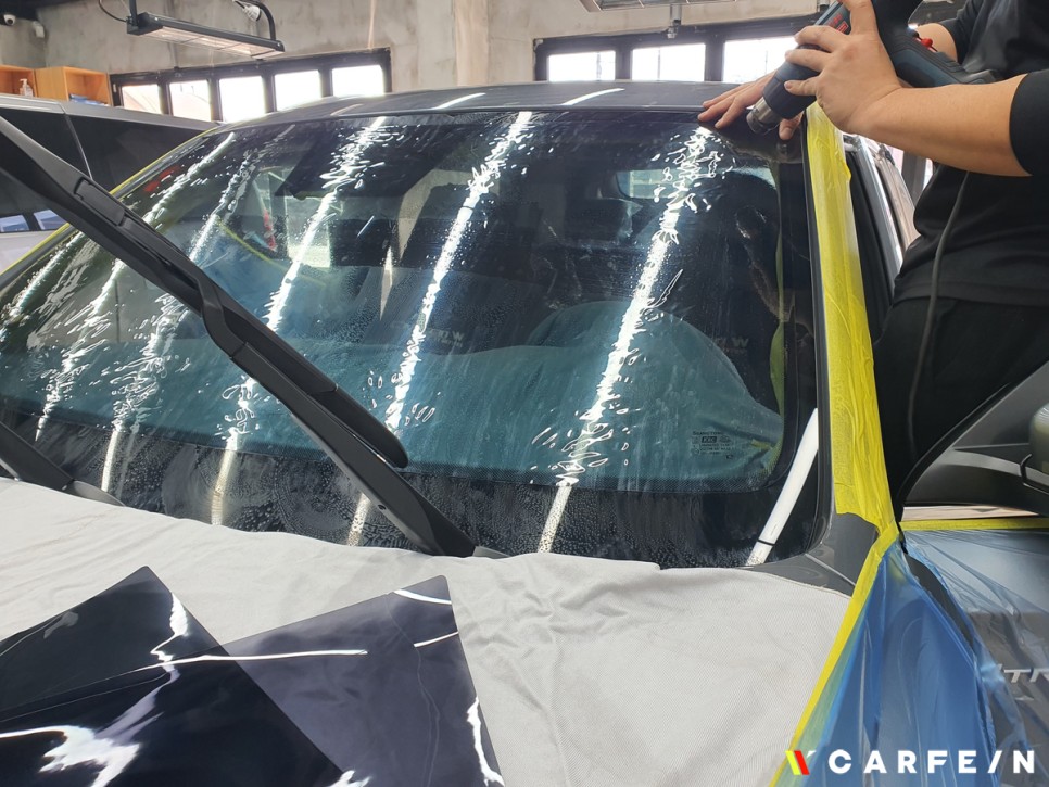 썬팅 작업을 진행하고 있기 때문에 작업 중