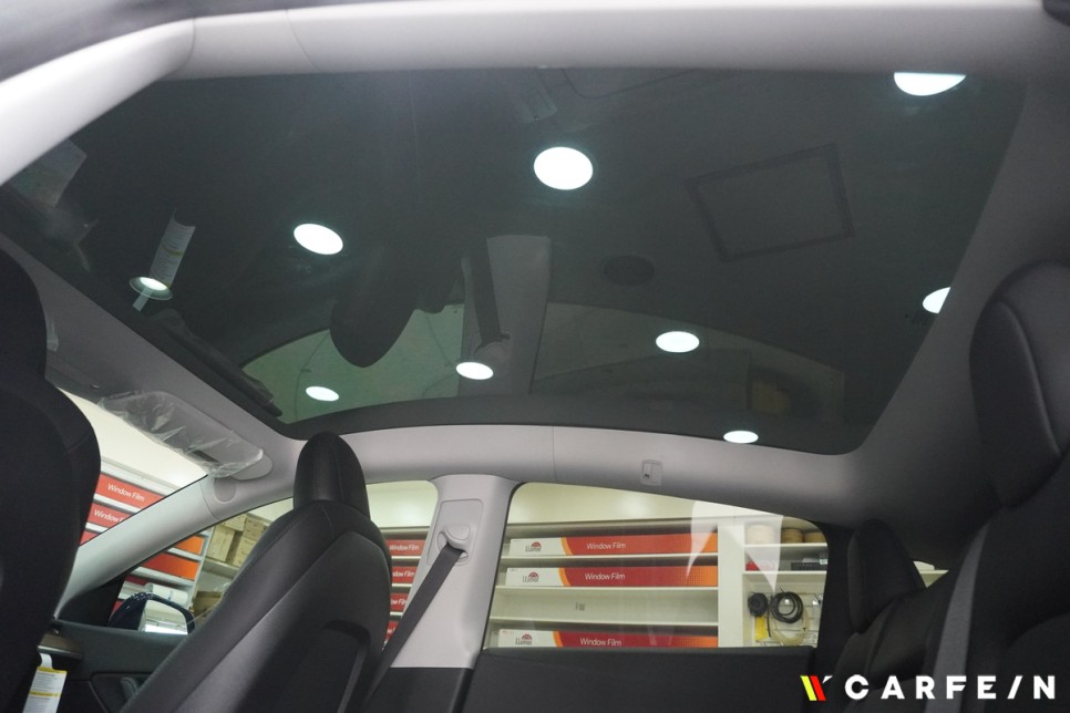썬팅 시공 전에는 모델Y 차량의 실내외 모두
