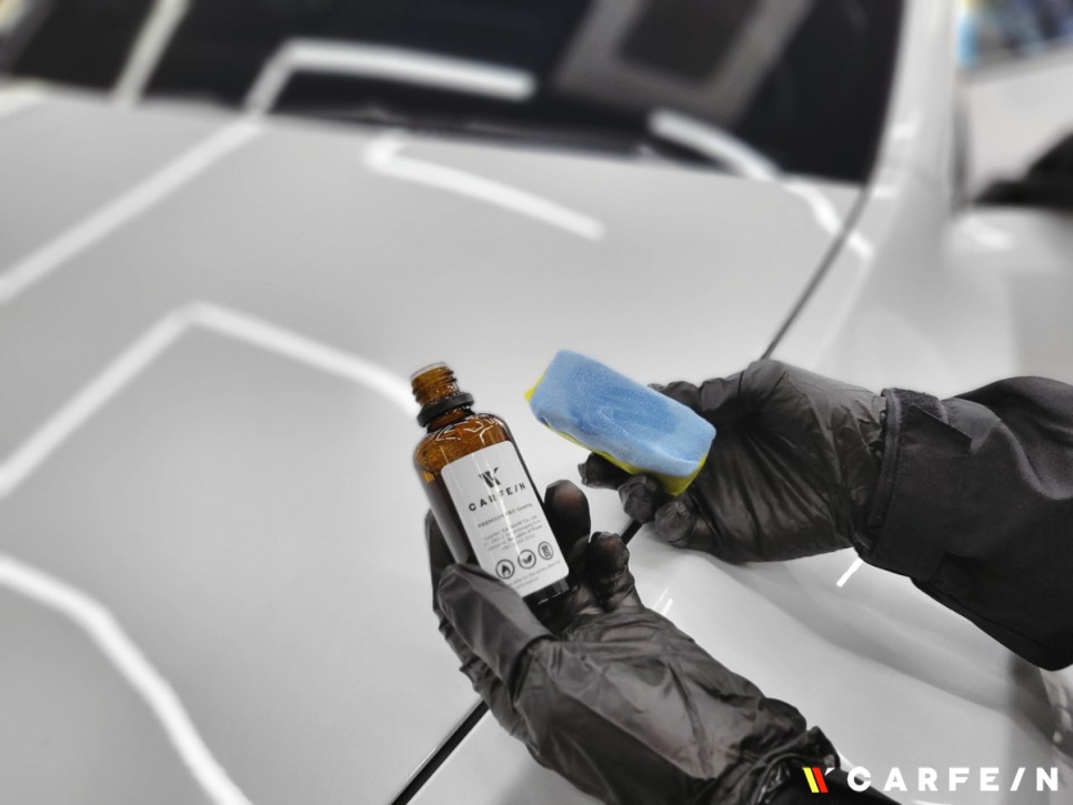 버핑된 유리막 코팅액을 견고하게 굳혀주니