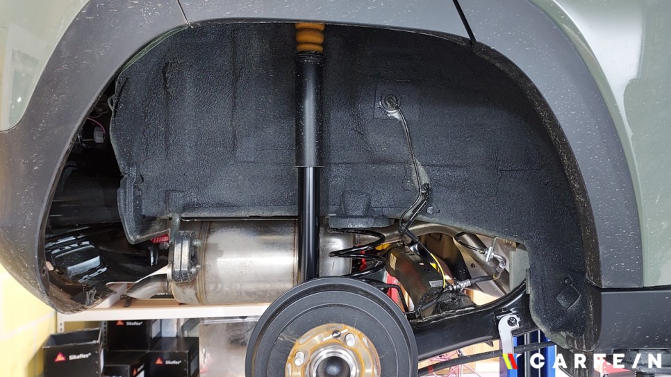 리프트 하여 휠과 휀다커버를 탈거합니다.