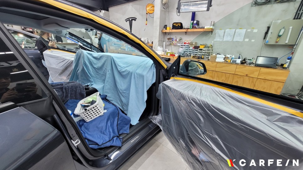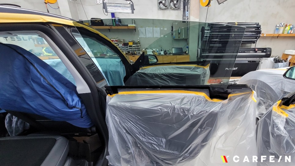 모델Y 내외부 모두 꼼꼼하게 마스킹 및 커버링을