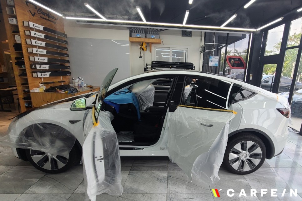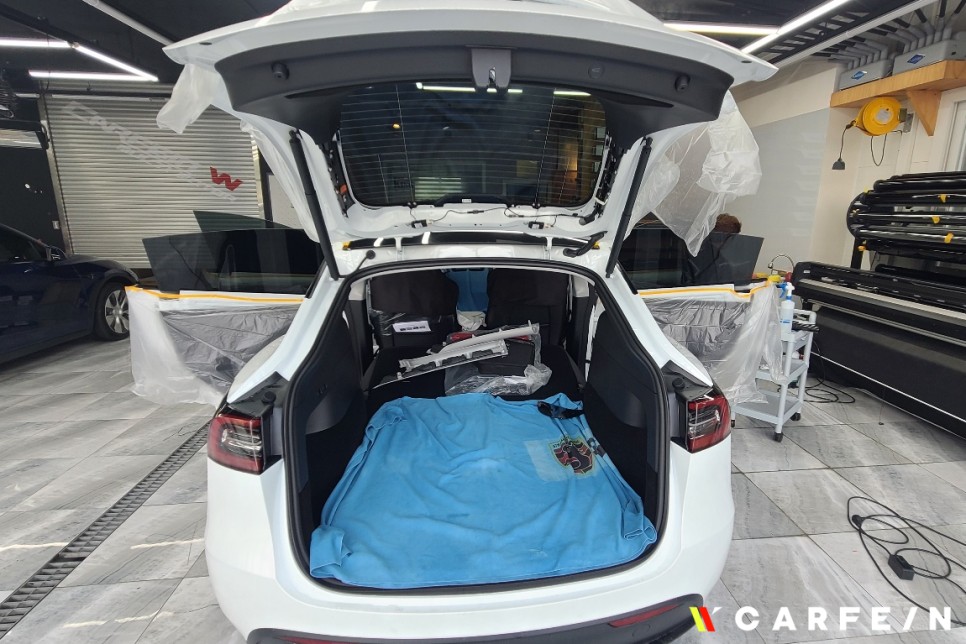 모델Y 썬팅(틴팅) 시공 시 1열과 2열의