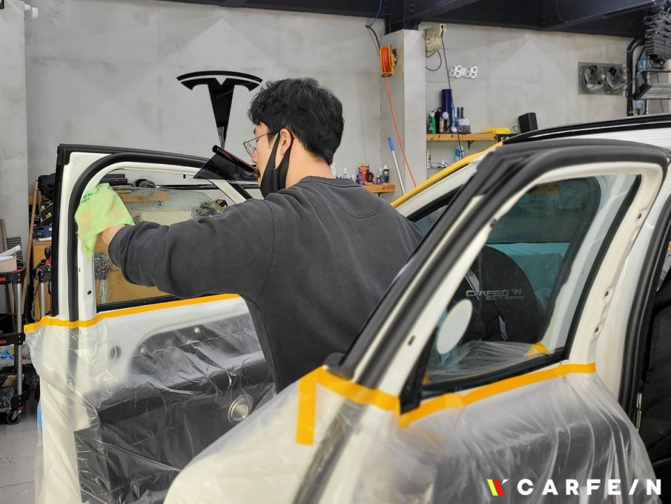 썬팅 작업 전 차량을 안전하게 보호하기 위해