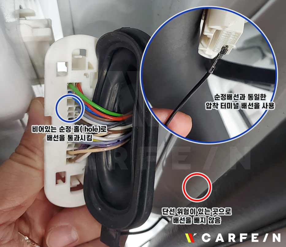 압착 터미널을 사용해 순정 커넥터에 연결하여