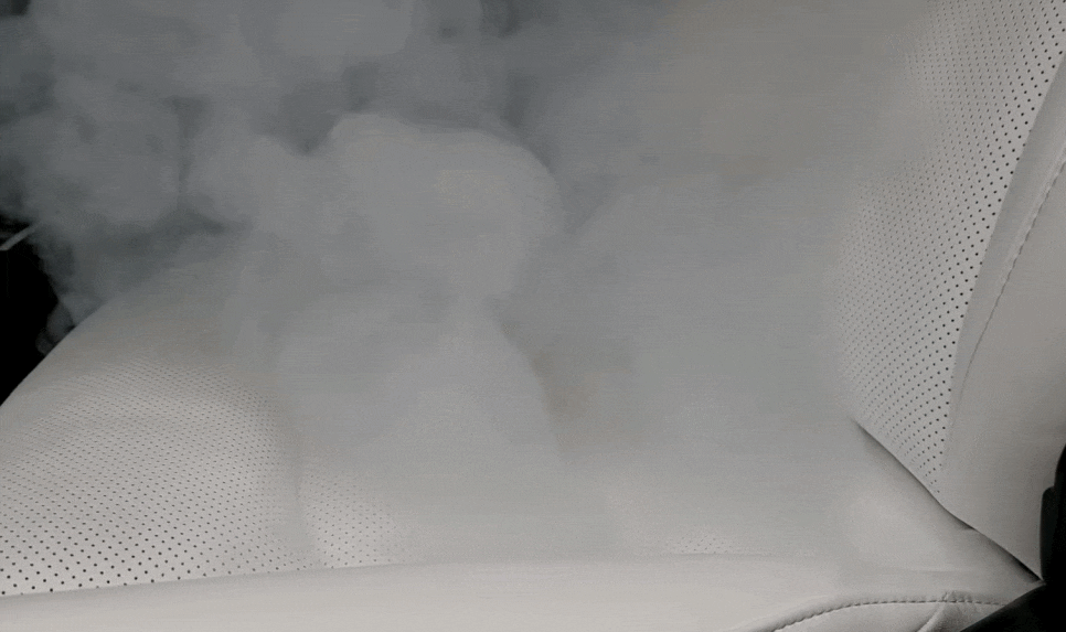 좌석 밑 피톤치드 실내소독 연기가 시트 사이로 나오는 모습