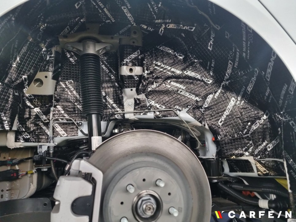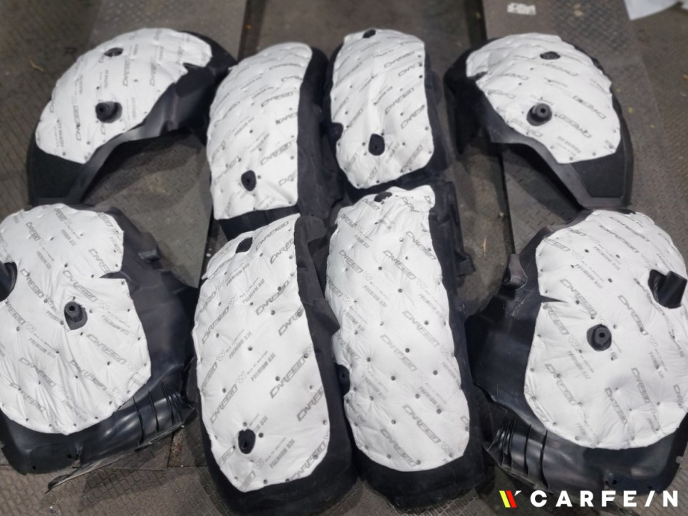 이어 휀다방음 작업도 진행이 되었는데요.