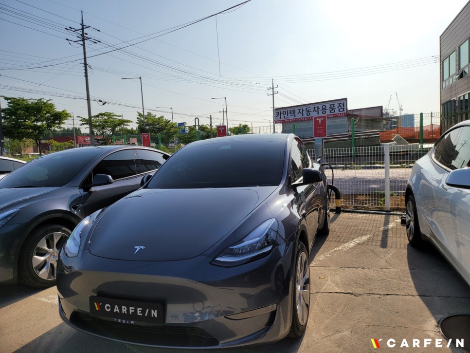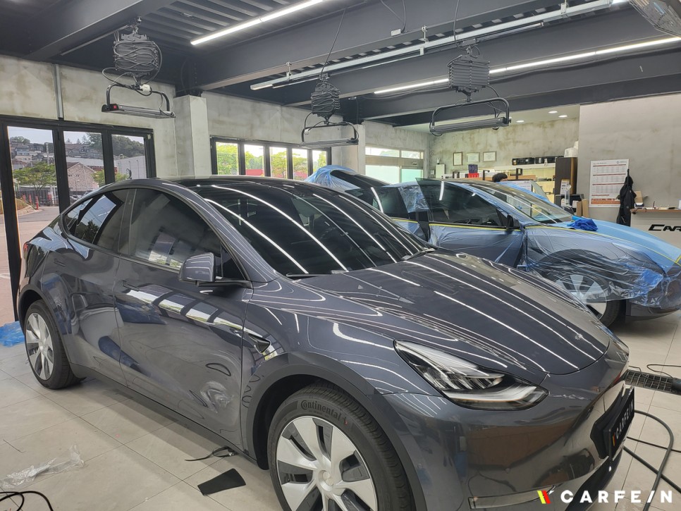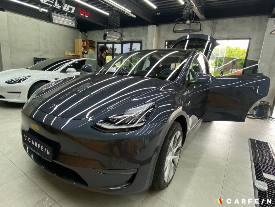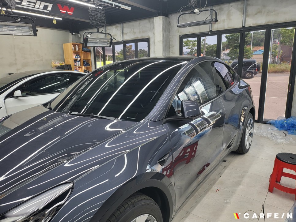 저희 카페인W 테슬라 모델Y 틴팅 작업 시에는
