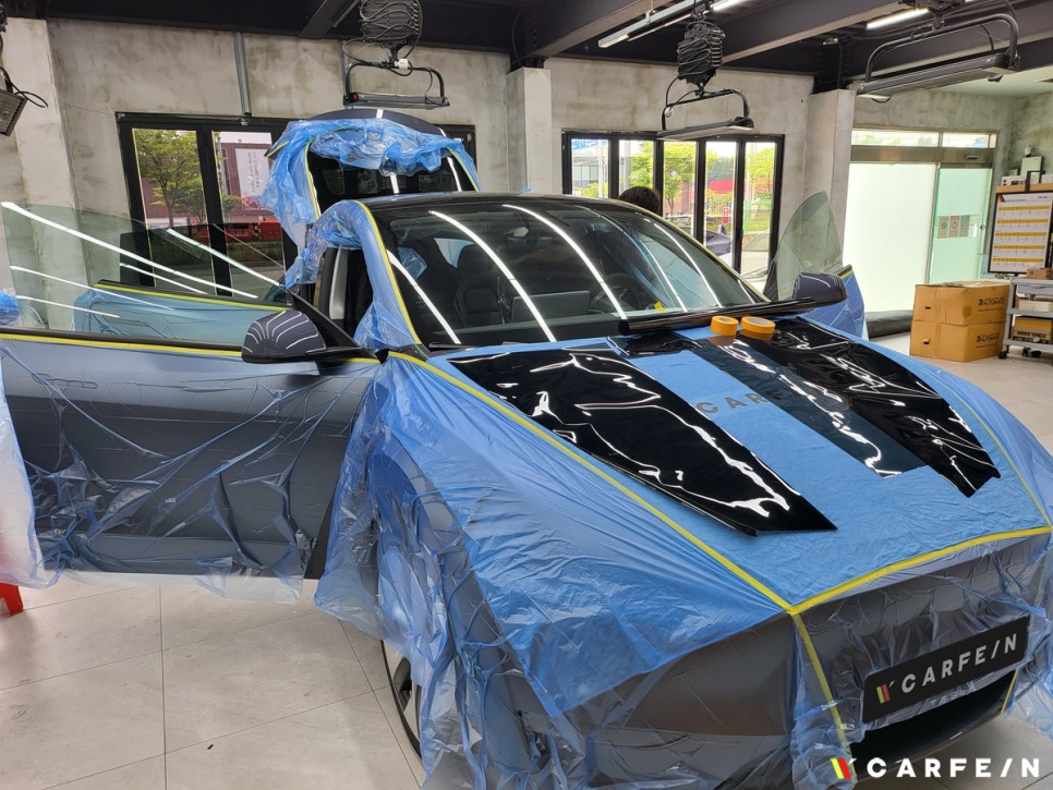 차량 전체의 도장면에 마스킹 및 커버링