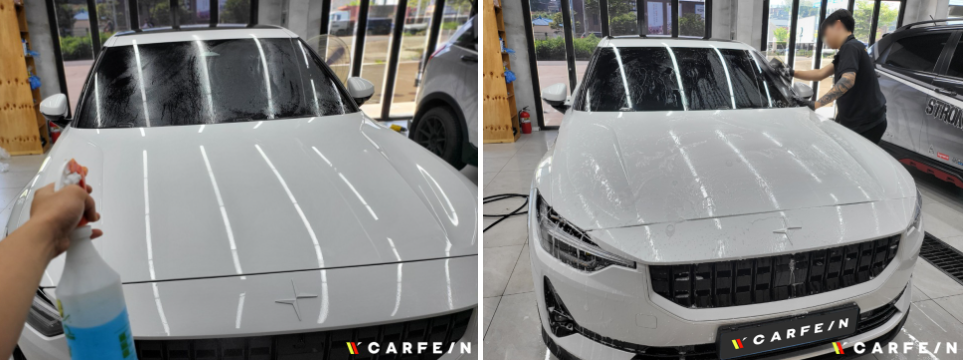왼쪽 사진은 마무리를 위한 세차 작업을