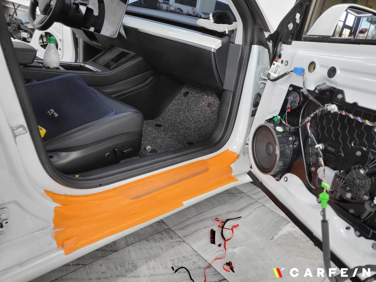 도어 탈거는 기본이며 차량 구조상 유리까지