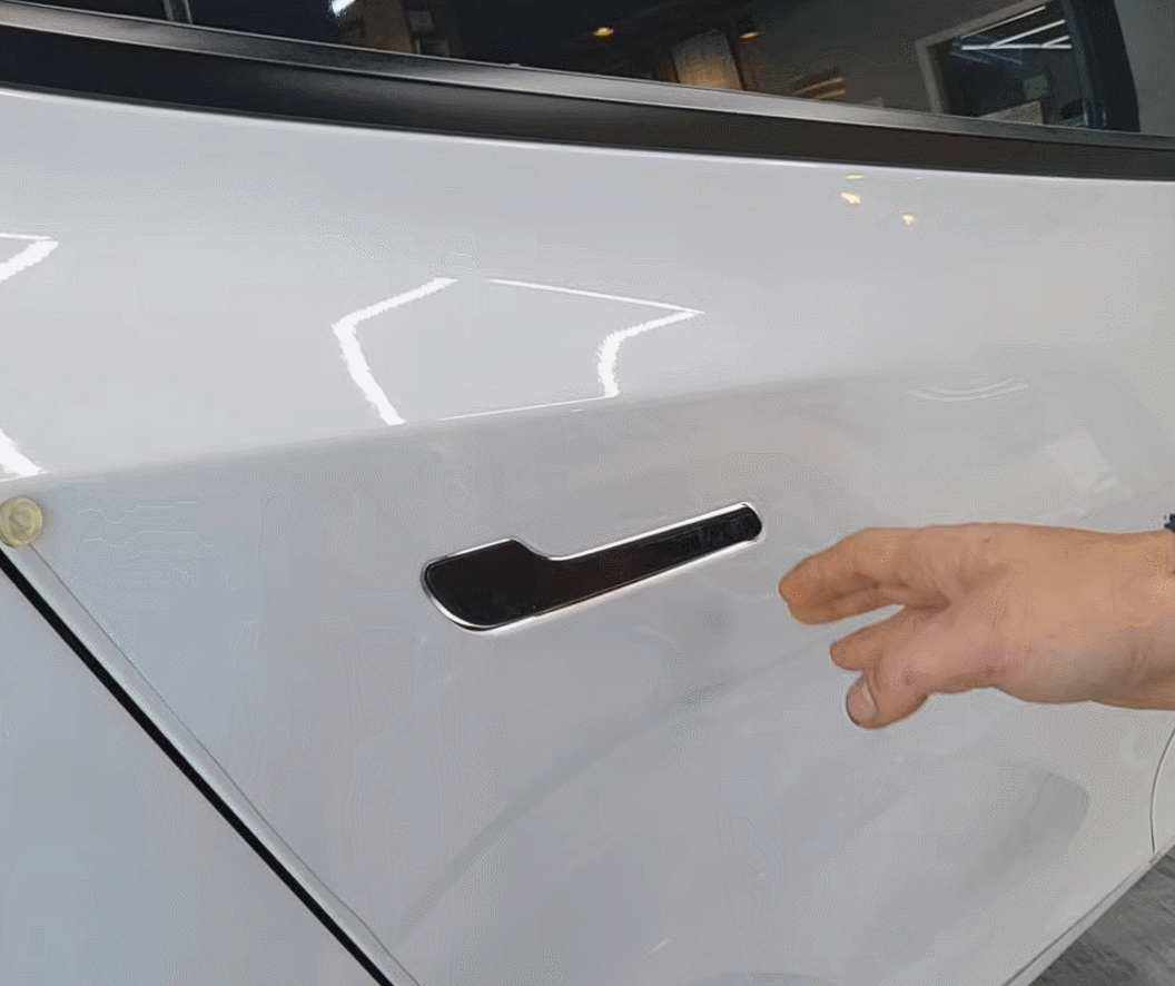 도어 손잡이가 오픈되어 지그시 잡고
